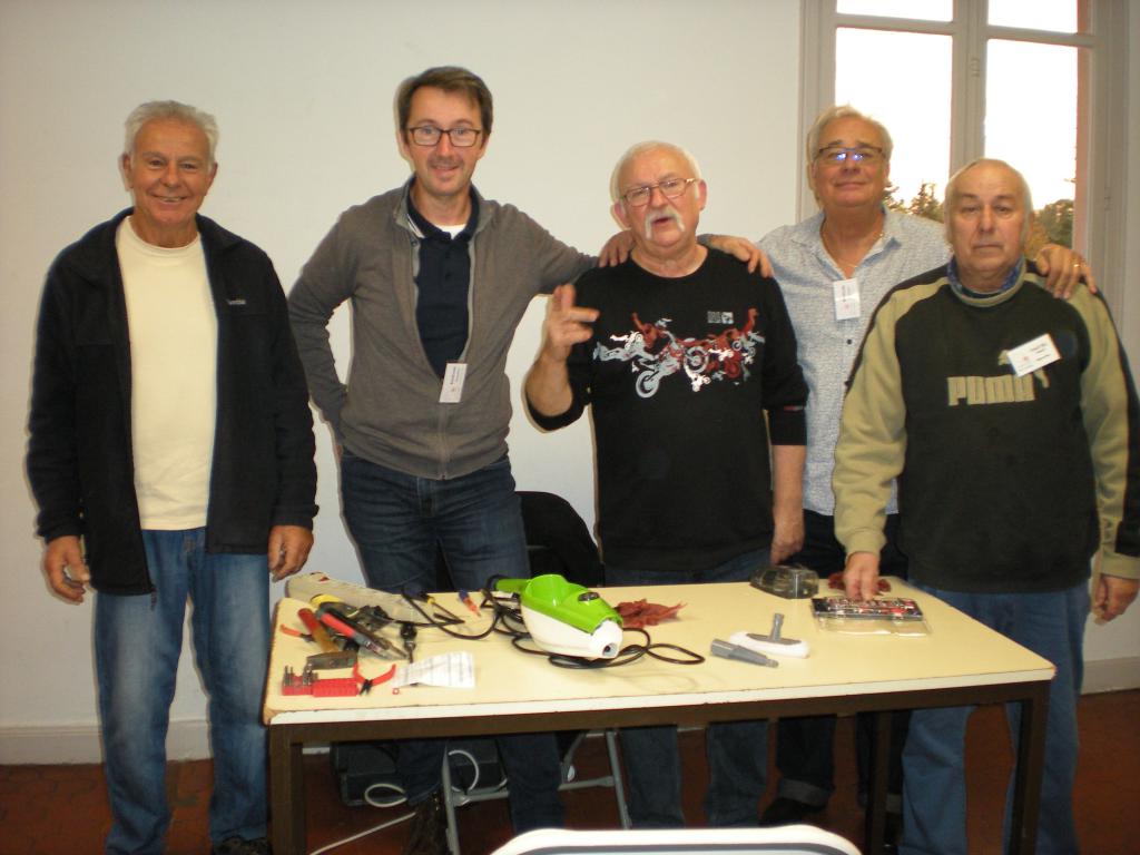 Un échantillon représentatif des 14 bénévoles présents à l’Atelier du 10 novembre 2018 qui fonctionnent dans une sympathique mixité et partagent des sourires qui illustrent bien la convivialité qui fait partie de l’ADN des Repair Cafés