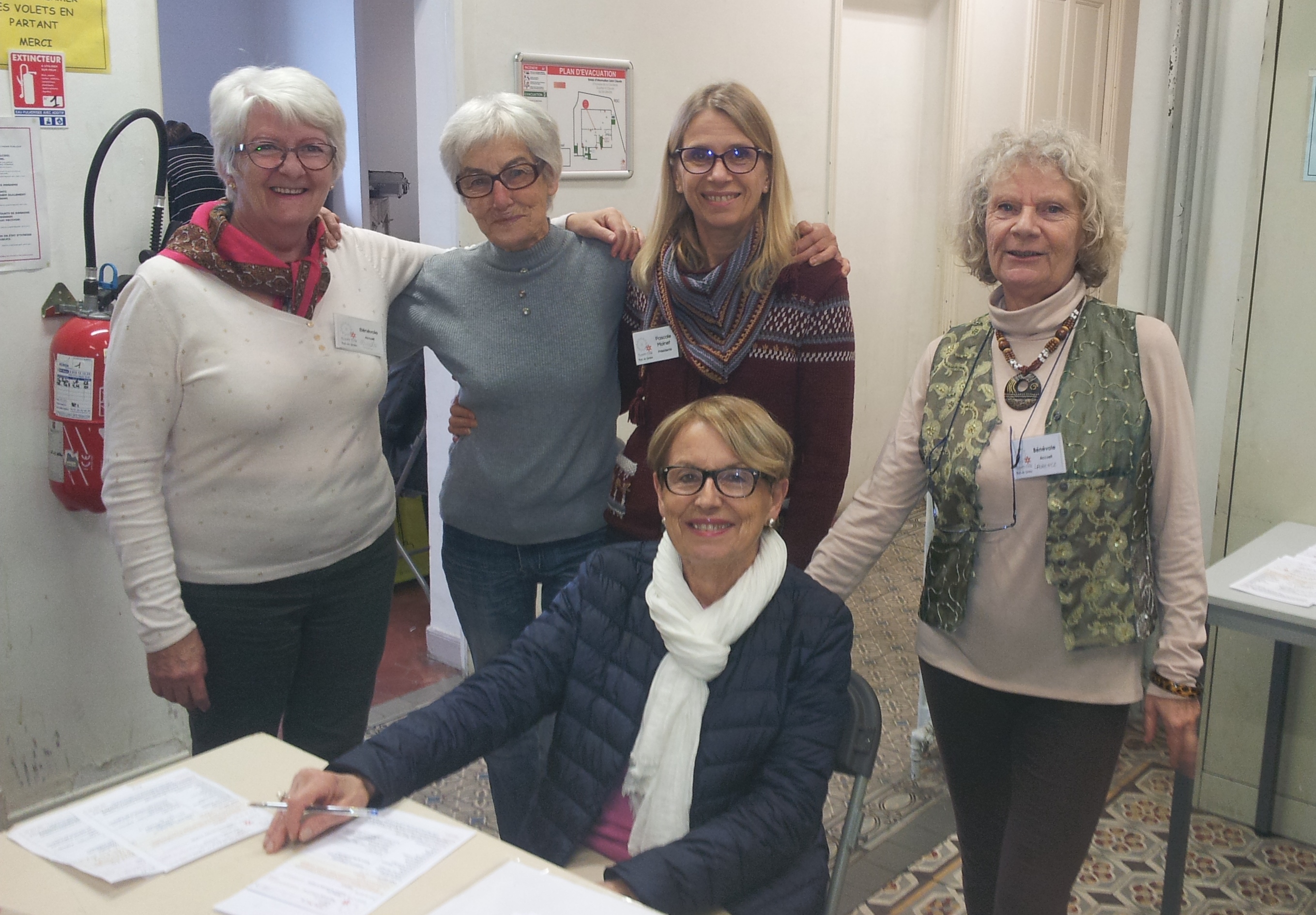 Avec trois nouvelles bénévoles en compagnie de la Présidente et la Secrétaire.