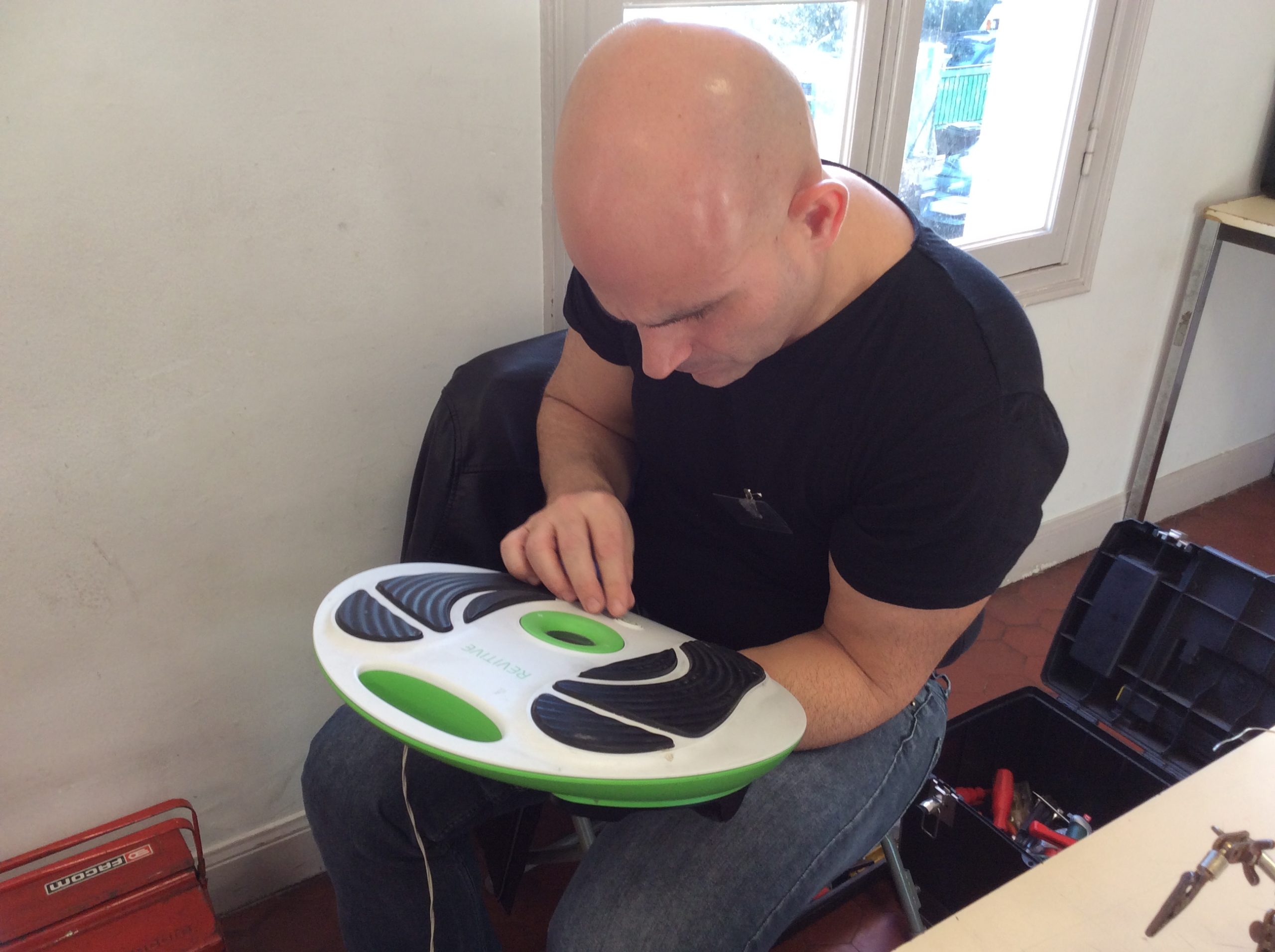 Eric, nouvelle recrue du Repair Café, qui lui a la palme de l’objet le plus étrange: une sorte de plateau pour les pieds dont personne n’a vraiment pu déterminer l’usage. Eric, qui est plutôt professionnellement bercé par l’informatique, a de multiples compétences: rase-peluche, sonnette sans fil, brosse à dent électrique.. son après-midi a été assez éclectique..