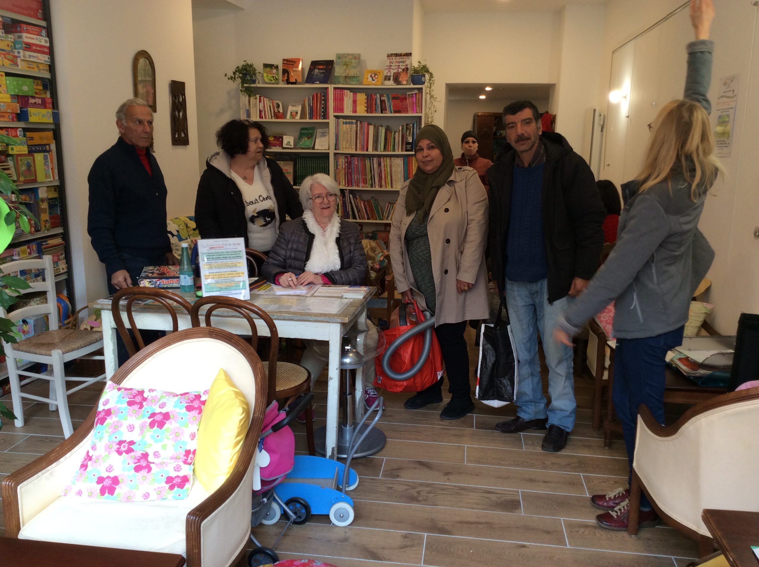 C’est avec toute la chaleur et la convivialité des membres D‘Une Rive à l’Autre que nous avons été accueilli.e.s. Nos réparateurs ont rapidement découvert une des principales raisons pour laquelle ils étaient là. Je vous laisse deviner.., et nous avons été chouchouté.e.s à renfort de tasses de thé, café et sucreries.