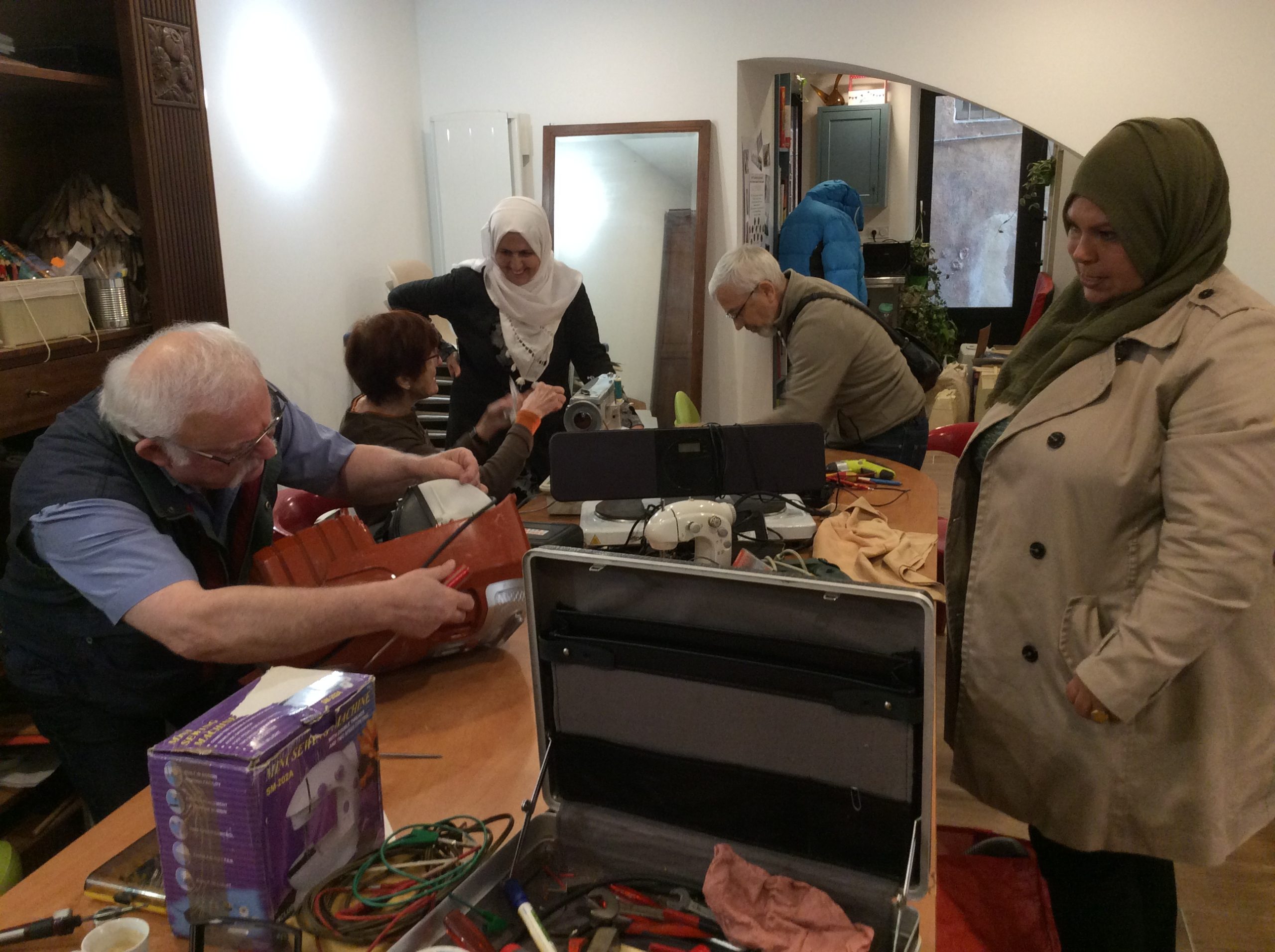 Ravi.e.s de ce moment de partage, certaines visiteuses ont pris les choses en main, et se sont mises à la réparation.. au Repair Café, nous réparons ensemble !