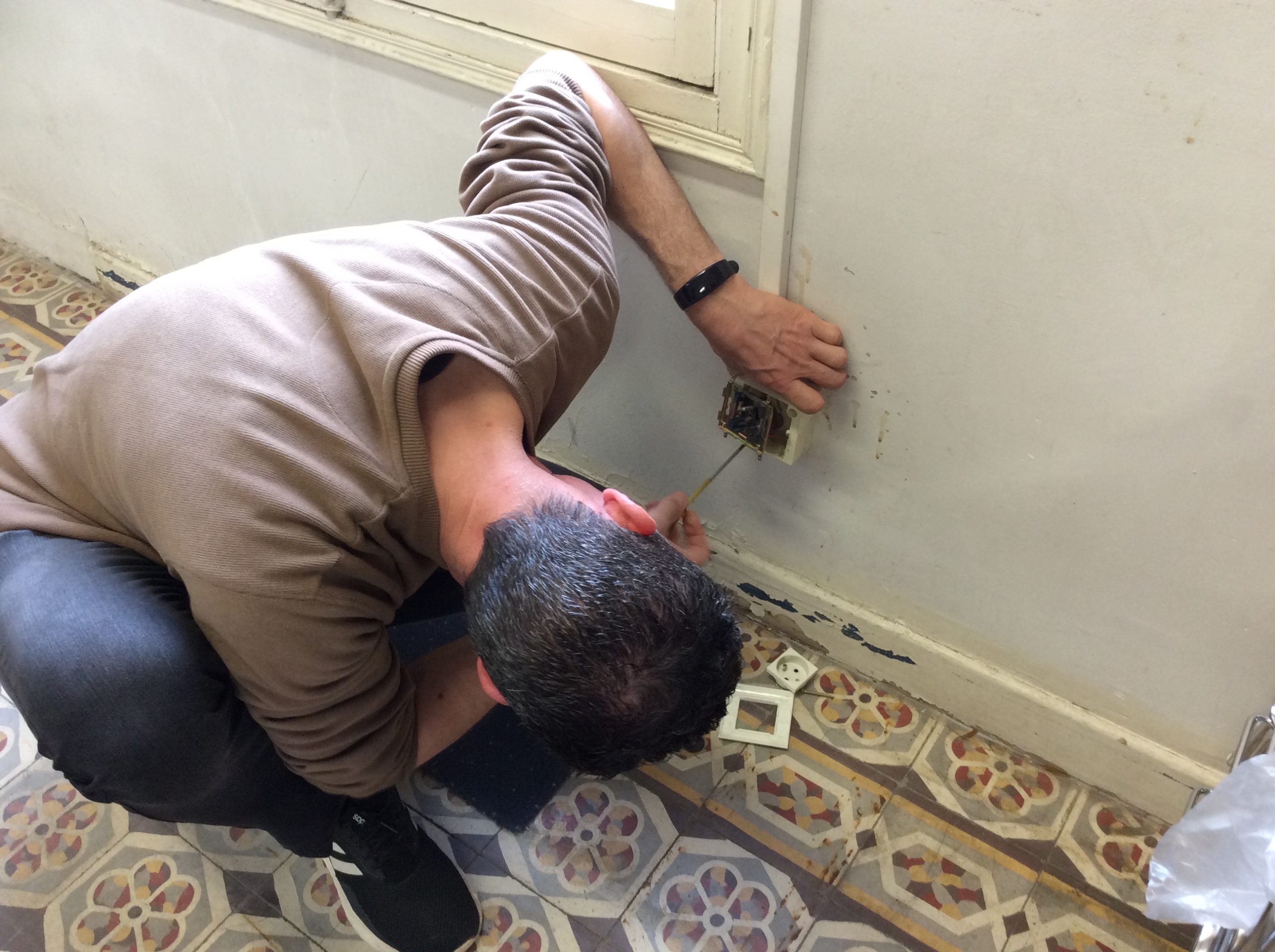 Une petite réparation de l’installation électrique de salle municipale au passage : François est intervenu, tandis que quelques réparateurs consolidaient les tables fatiguées..