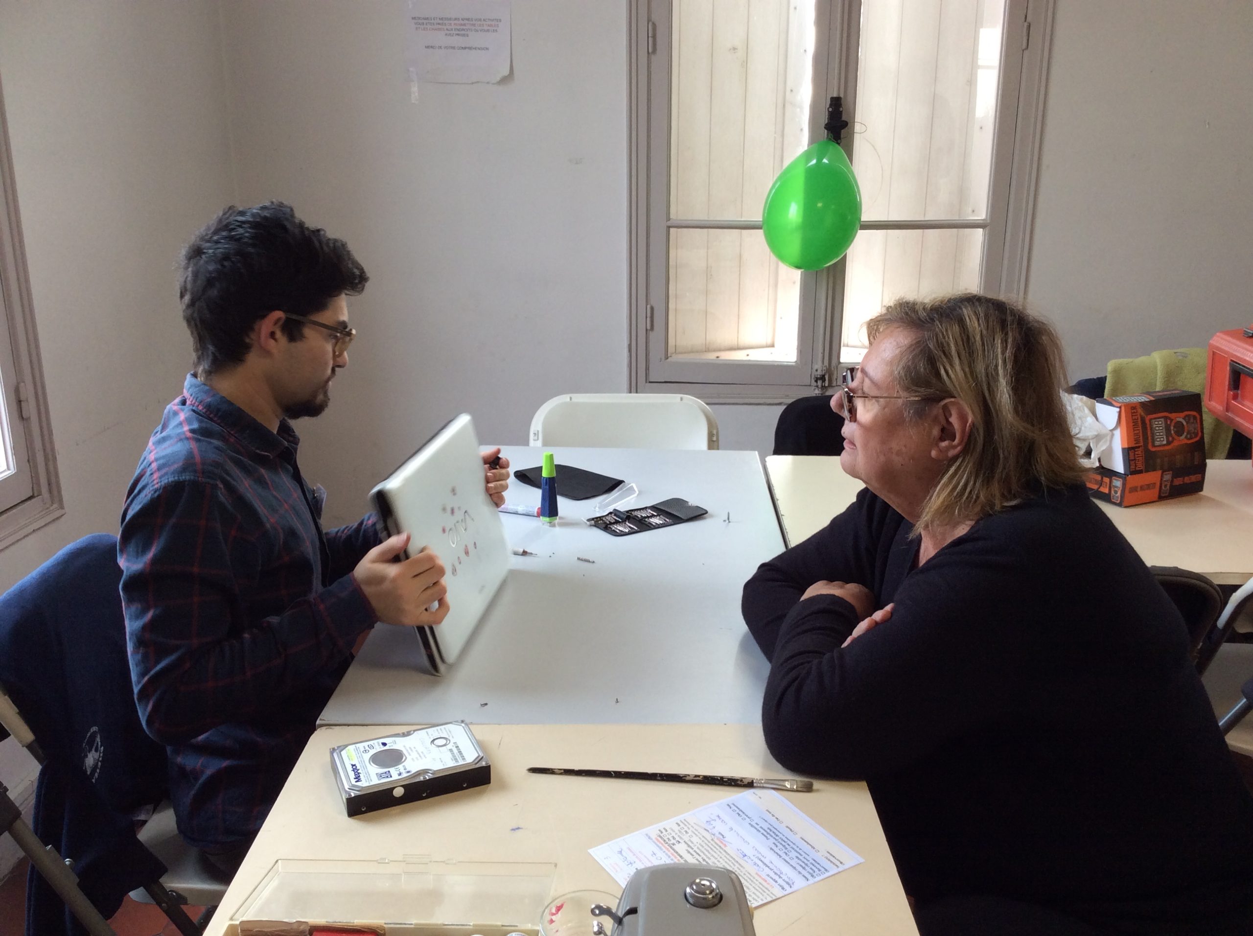 A noter que depuis peu un réparateur compétent en informatique nous a rejoint (il s’appelle lui aussi Christophe), et qu’il a fort à faire avec ordinateurs, disques durs et autres objets de ce genre..  et nous avons eu le plaisir d’être rejoint par un nouveau bénévole réparateur, Claude.