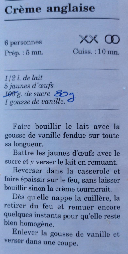 Avec quelques précisions du Chef Christophe : pour le brownie, c’est 100 g de sucre et non 160. Pour la crème anglaise, ne pas dépasser les 83 degrés sinon grumeaux assurés.. Le plus sûr est d’utiliser un thermomètre de cuisson.