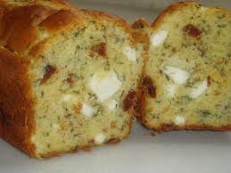 1 yaourt nature de brebis, 3 oeufs, 3 pots de farine, 1 pot d’huile d’olive, 1 sachet de levure chimique, une pincée de sel, de l’emmental en cubes, des tomates séchées, du persil et des échalottes. Mélangez le tout et mettez à four chaud (210 degrés) pendant 40 minutes.