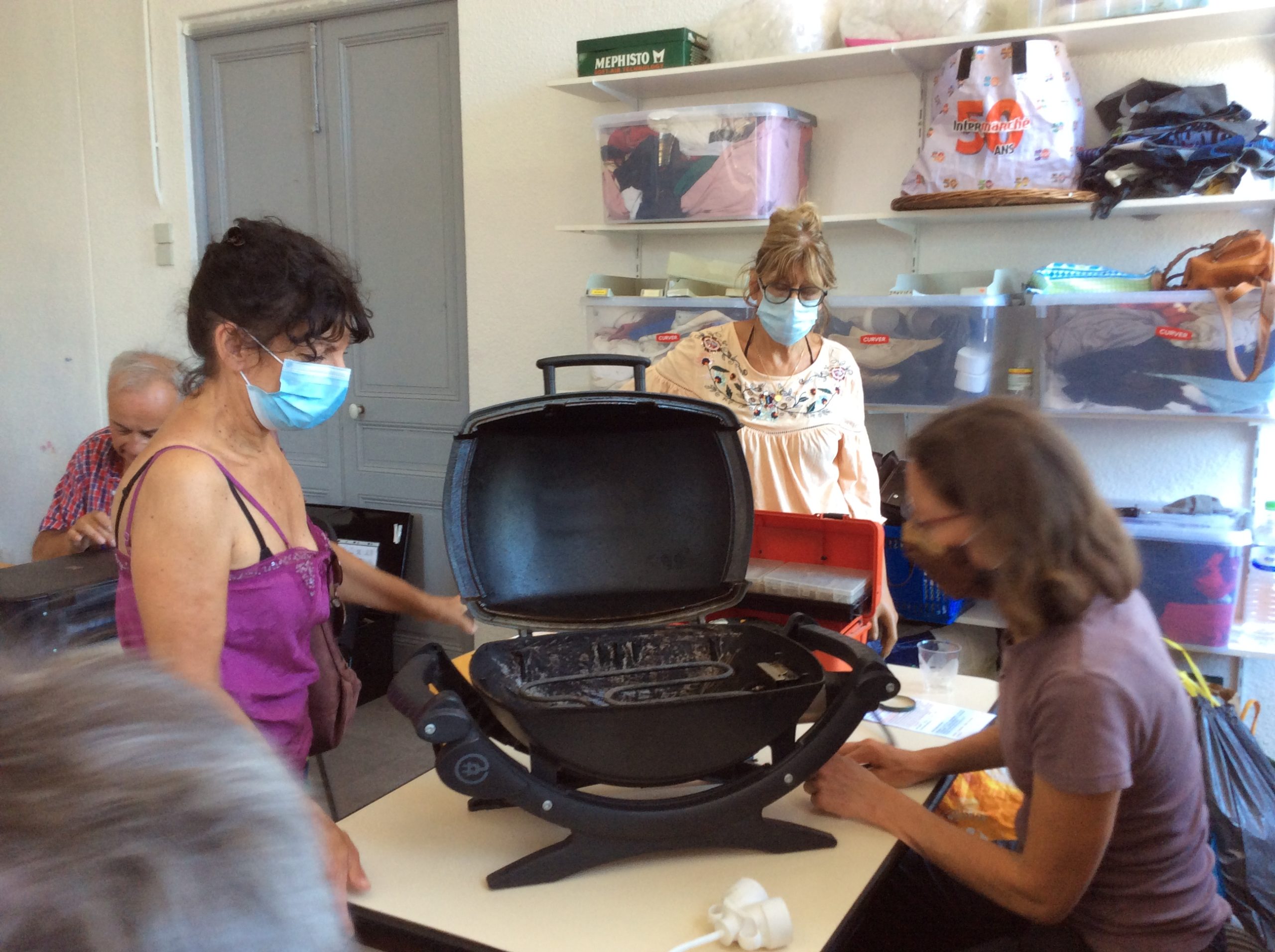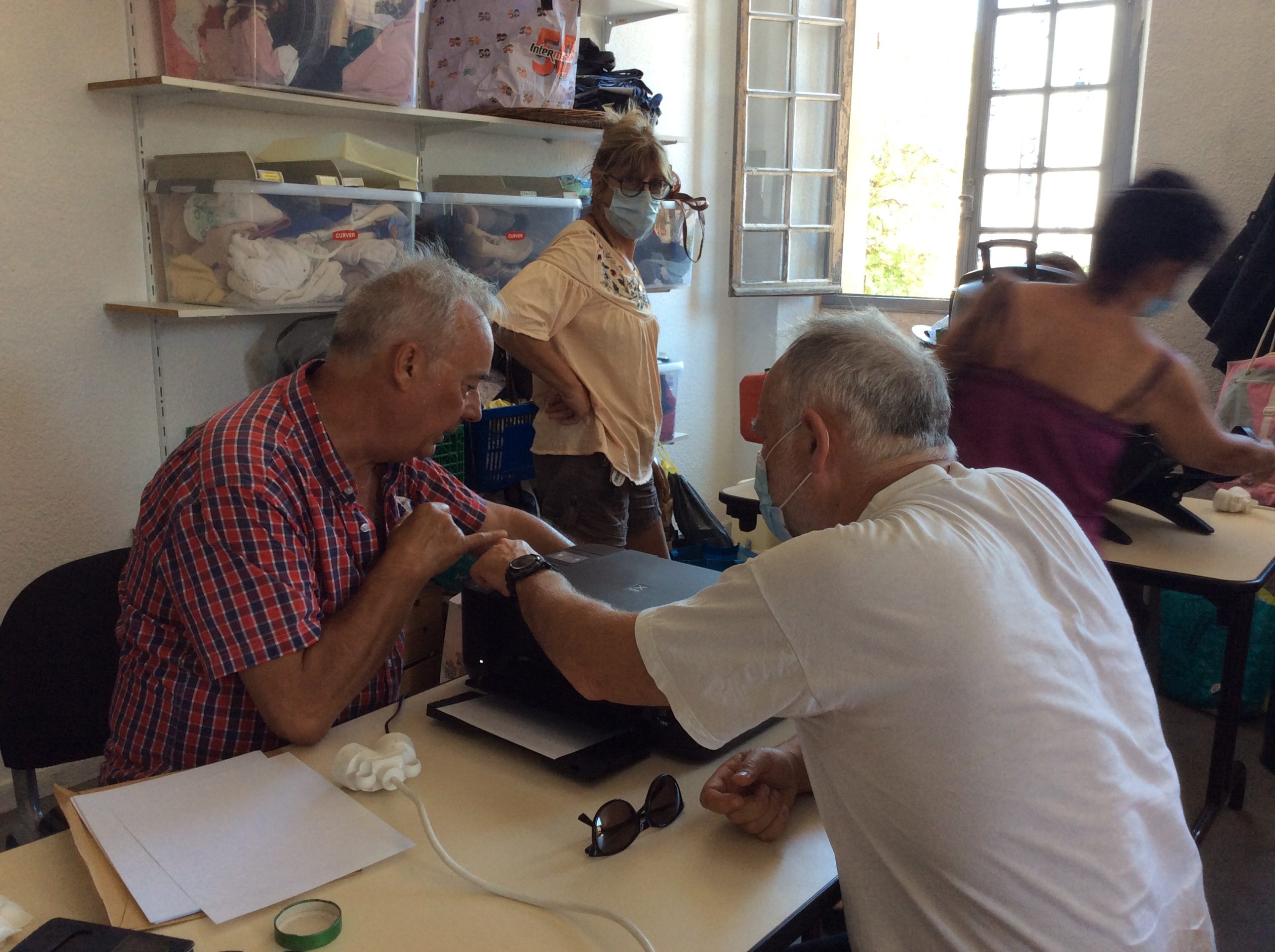 Il a donc fallu mettre tout ceci en place, avec une interrogation… nos visiteur.euse.s accepteront-ils ce nouveau format ? La réponse est oui, puisque depuis lundi l’agenda est complet, que nous avons une liste d’attente, et des inscrits pour l’atelier du 29 août.. Comment gérer les rendez vous? Il n’est pas facile de savoir combien de temps va durer une intervention … deux minutes …. deux heures ? Nous avons donc essayé de faire au mieux, ou au moins mal… Bilan samedi en fin d’après midi. Un peu de stress que les bénévoles essaieront de conjurer ensemble en partageant un repas type auberge espagnole avant cet atelier en  fêtant les retrouvailles.