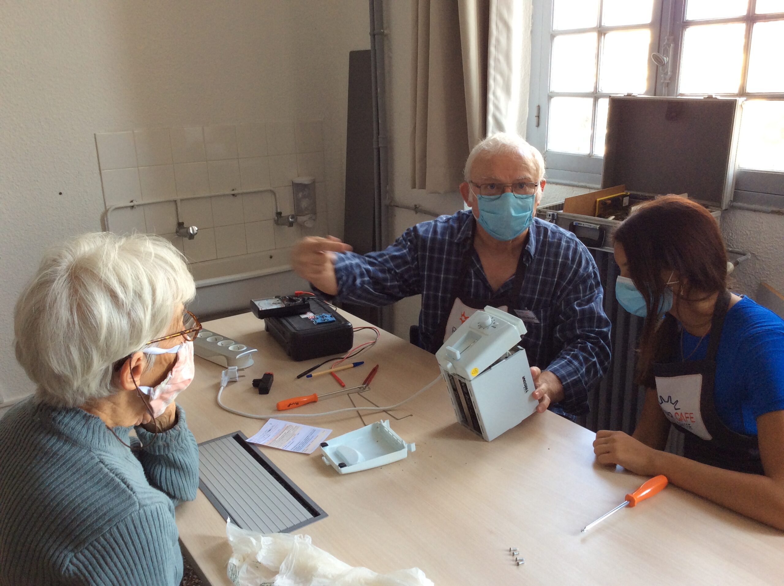 Maxi format par le nombre de bénévoles présent.e.s ce jour là, mais aussi par la taille des locaux dans lesquels nous avons pu prendre les objets en charge. En effet, afin de pouvoir accueillir tous les bénévoles réparateur.trice.s disponibles ce jour là, et respecter les distances de sécurité nécessaire en ces temps de COVID, ce sont deux salles contigües qui ont été mises à notre disposition par la SCIC Tétris ce samedi 10 octobre. Quelle joie de retrouver certains d’entre nous que nous n’avions pas vus depuis quelques temps, suite aux  ateliers restreints mis en place ces derniers mois.