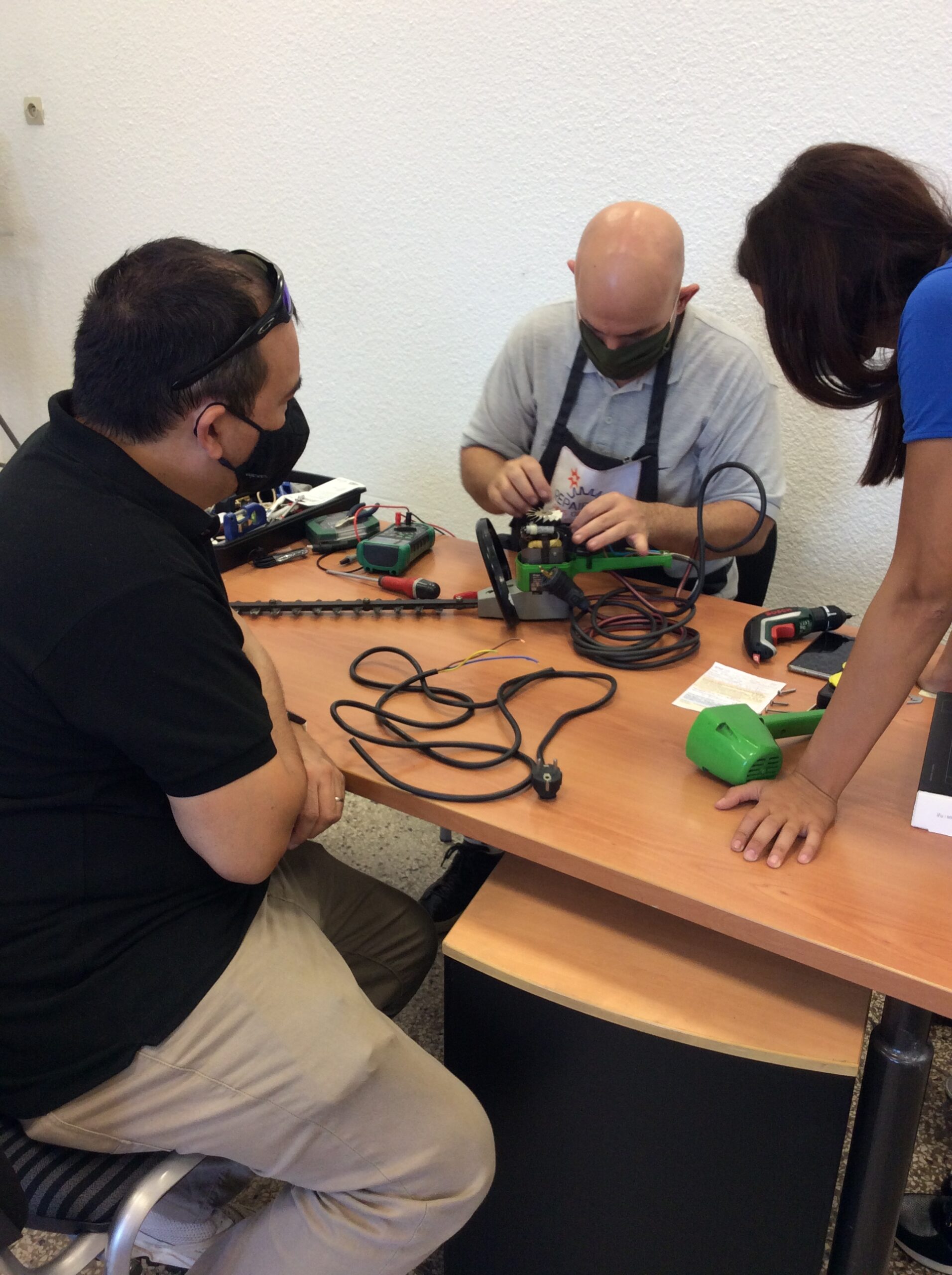 Mais qui est cette jeune réparatrice au côté de Jean-Marc ? C’est Mareyna, 18 ans, qui s’est engagée en mai dans notre association, et que nous avons pu accueillir pour la première fois grâce à ce Maxi-atelier. Mareyna a un CAP automobile, et nul doute qu’elle sera rapidement opérationnelle après avoir été au contact de nos réparateur.trice.s quelques temps. Le partage des compétences est une des valeurs importantes du Repair Café, que ce soit auprès des plus jeunes, qu’entre réparateur. trice.s confirmé.e.s.