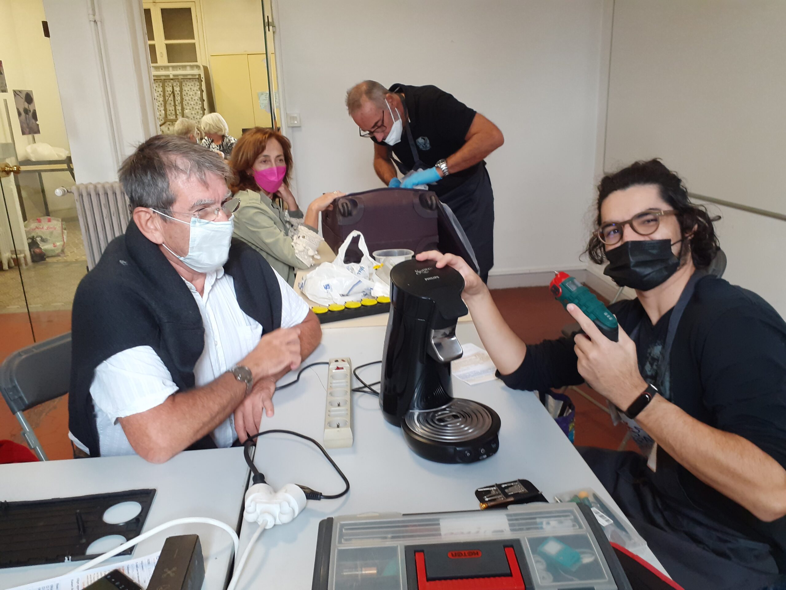 23 octobre : formation interne pour nos bénévoles réparateurs, sur les machines à café complexe.