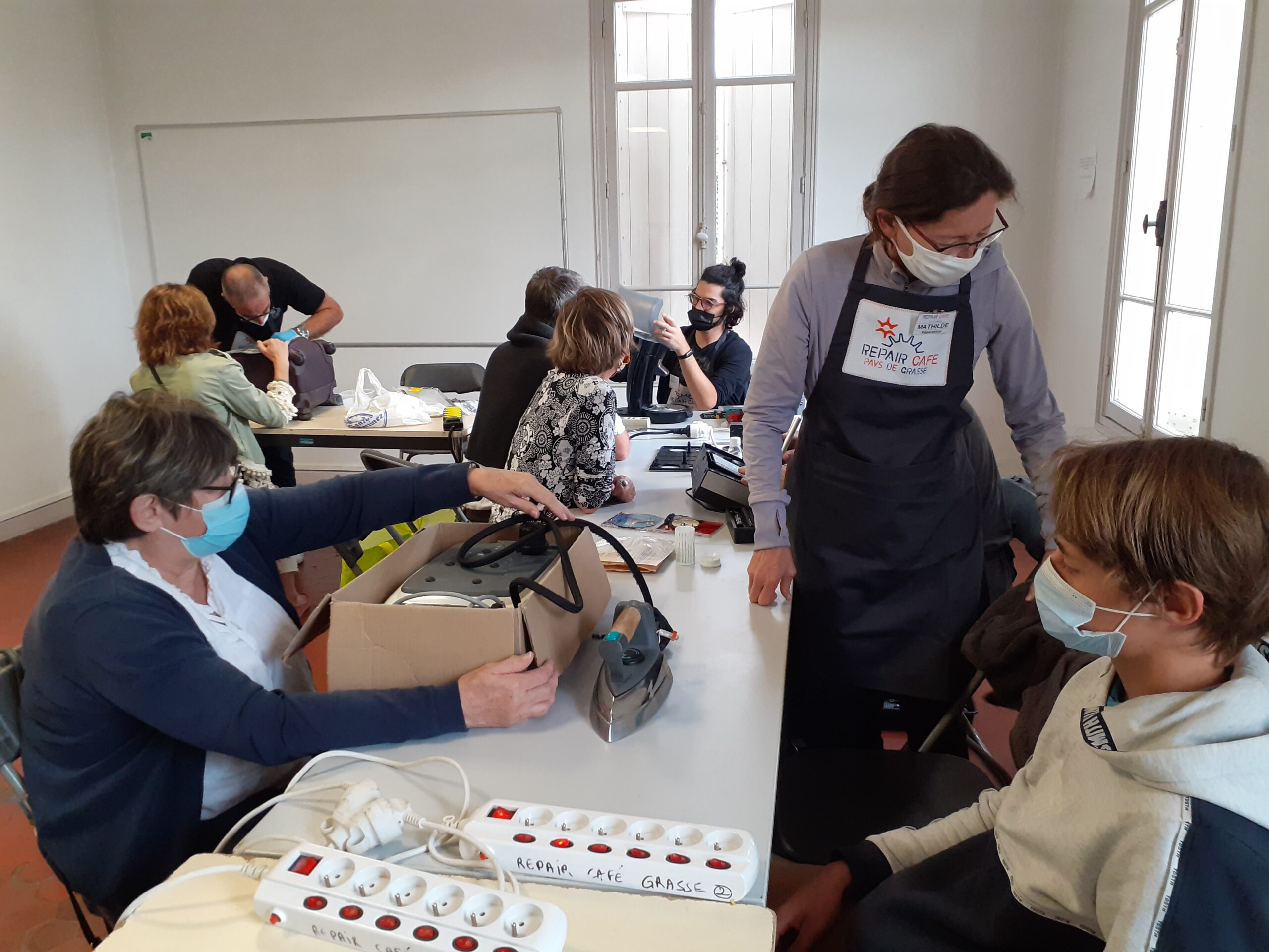 20 octobre. Comme chaque année lors de la semaine de l’engagement ayant lieu au lycée Amiral de Grasse, les bénévoles du Repair Café ont répondu présents. Annie, Georges, Nicole, Serge et Yann ont partagé avec les élèves de seconde les valeurs de notre association : réparer plutôt que jeter, s’engager dans le bénévolat. Après quelques notions « théoriques » et chiffres proposés par Annie et Nicole, nos trois réparateurs ont fait quelques démonstrations de réparations courantes. Contrairement aux années pré-covid, tout cela s’est fait en respectant les gestes barrières et les distances de sécurité. Un peu moins convivial, mais plus sûr !