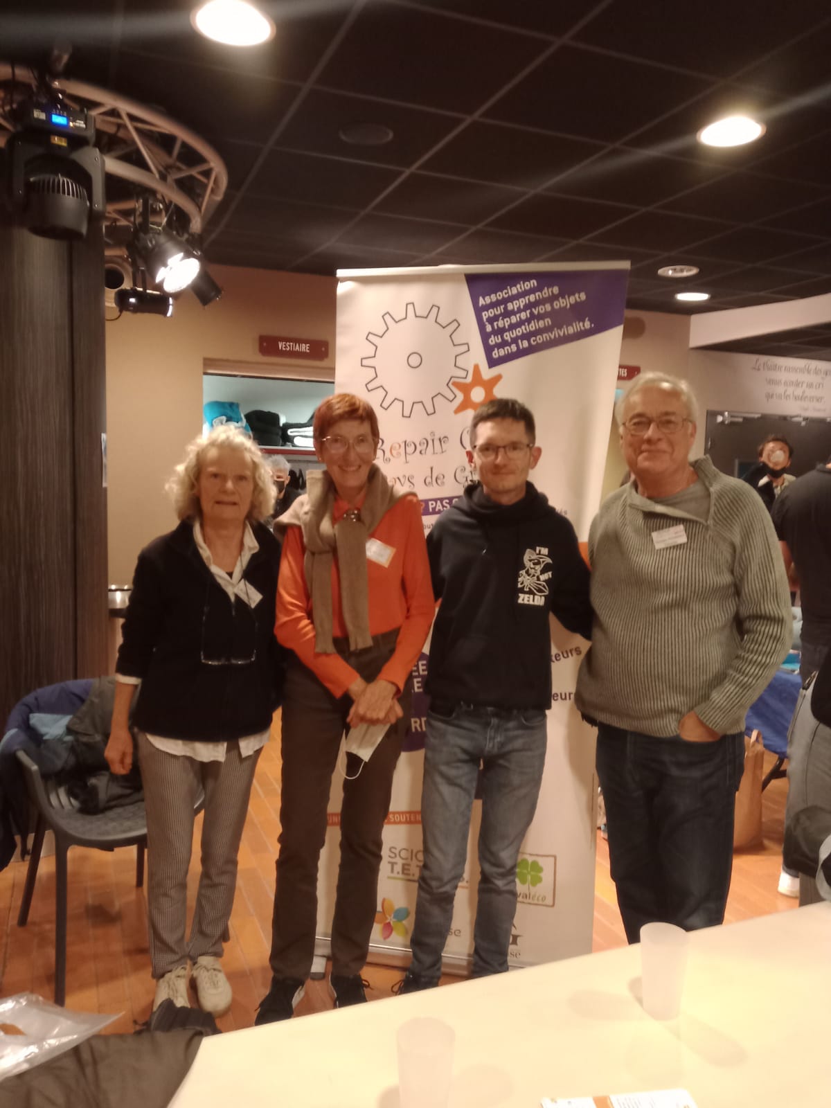 Claude, Georges, Laurence et Laurent ont été heureux.ses de représenter le Repair Café lors de cette soirée, afin de les remercier de cette belle initiative et de faire mieux connaitre notre association au public présent. Il a été au rendez-vous et a pu découvrir de jeunes et prometteurs talents. Nul doute que les organisateurs et les artistes ne s’arrêteront pas là, et que d’autres évènements suivront dans les mois et les années qui viennent. Bravo à tous et toutes