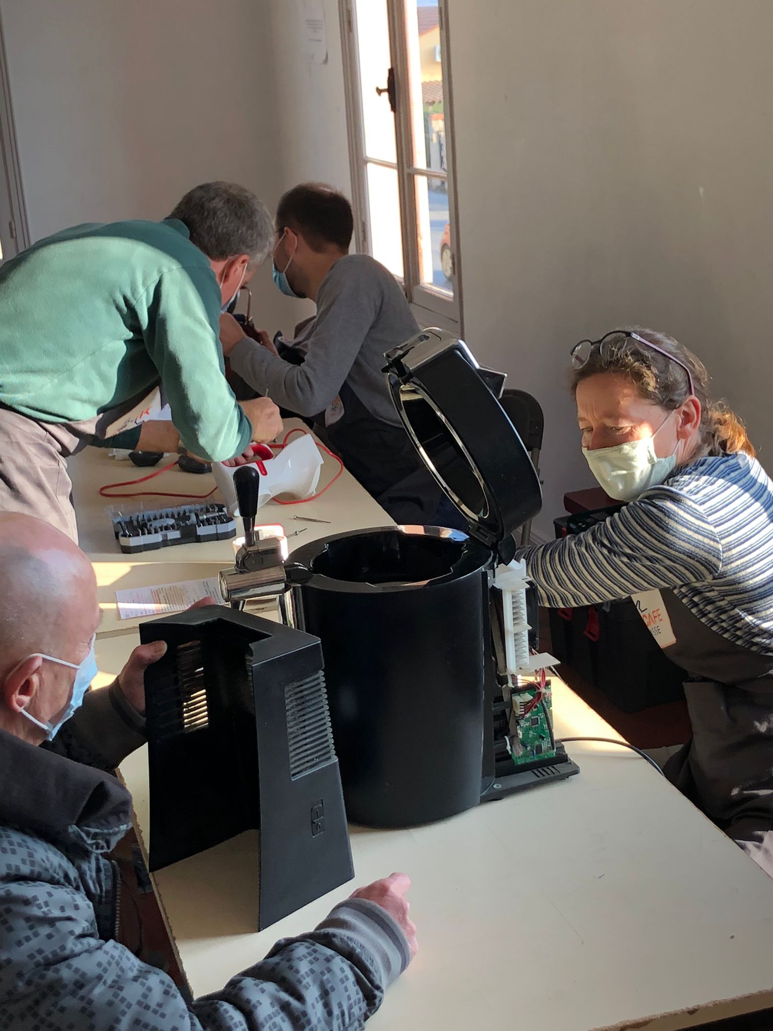 Un grand merci donc à nos deux Christophe, Claude, Didier Georges, Laurent, Marius, Mathilde, Pierre, Serge et Yann côté remise en forme de vos appareils. Et à Annie, Laurence, Martine et Nicole qui vous ont accueilli.e.s, et assurent le côté plus administratif et organisationnel de nos ateliers.