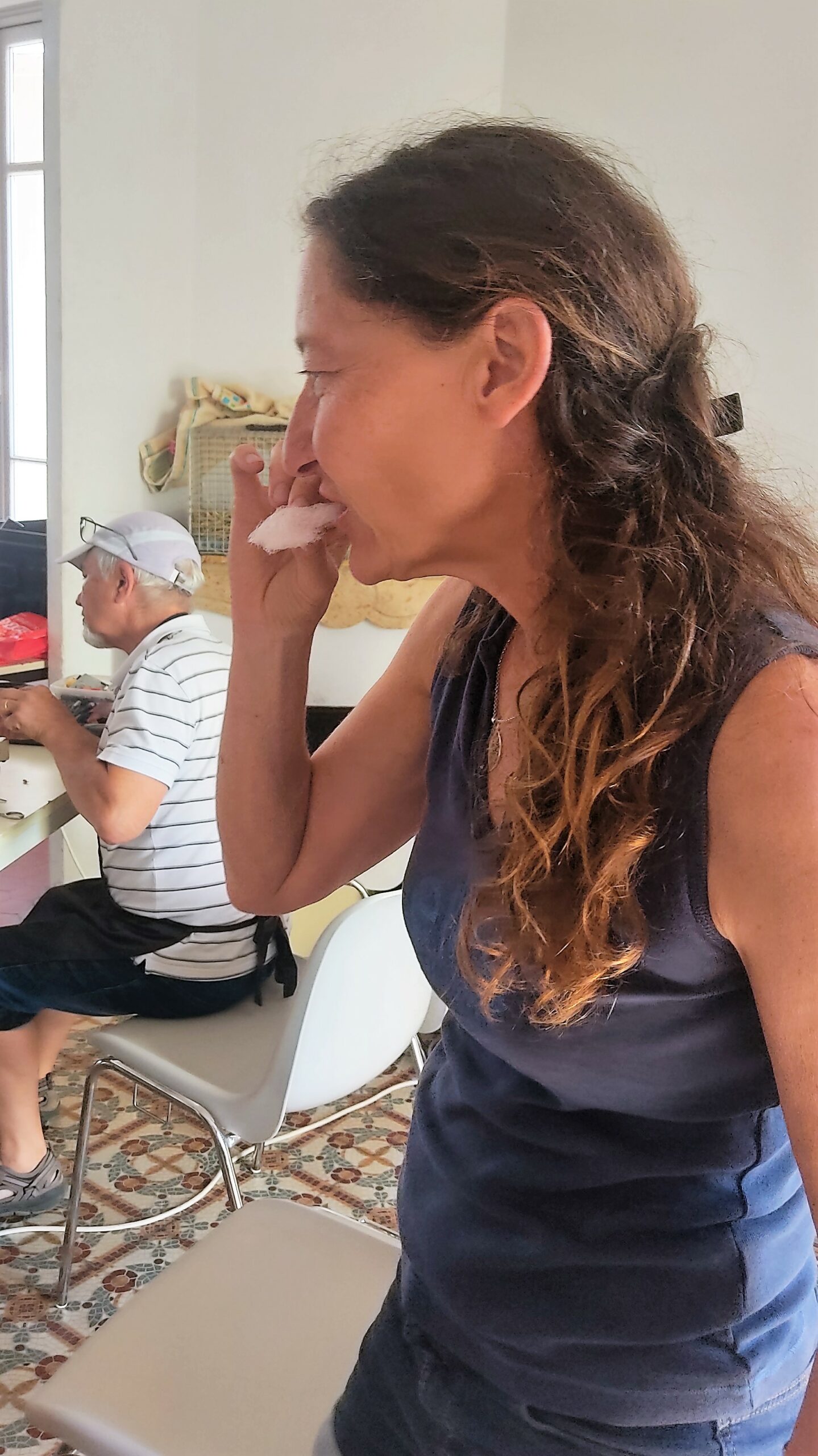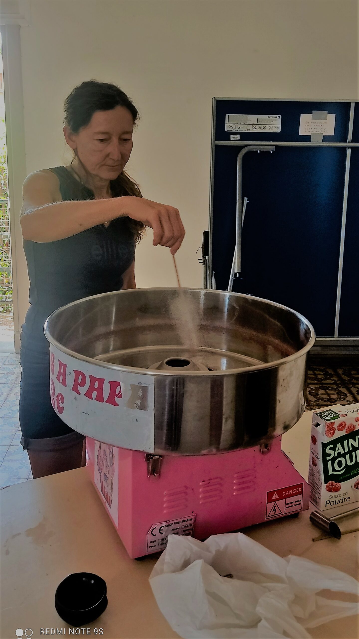 - Après avoir réussi sa réparation, Mathilde a l’honneur de s’essayer à sa première barbe à papa