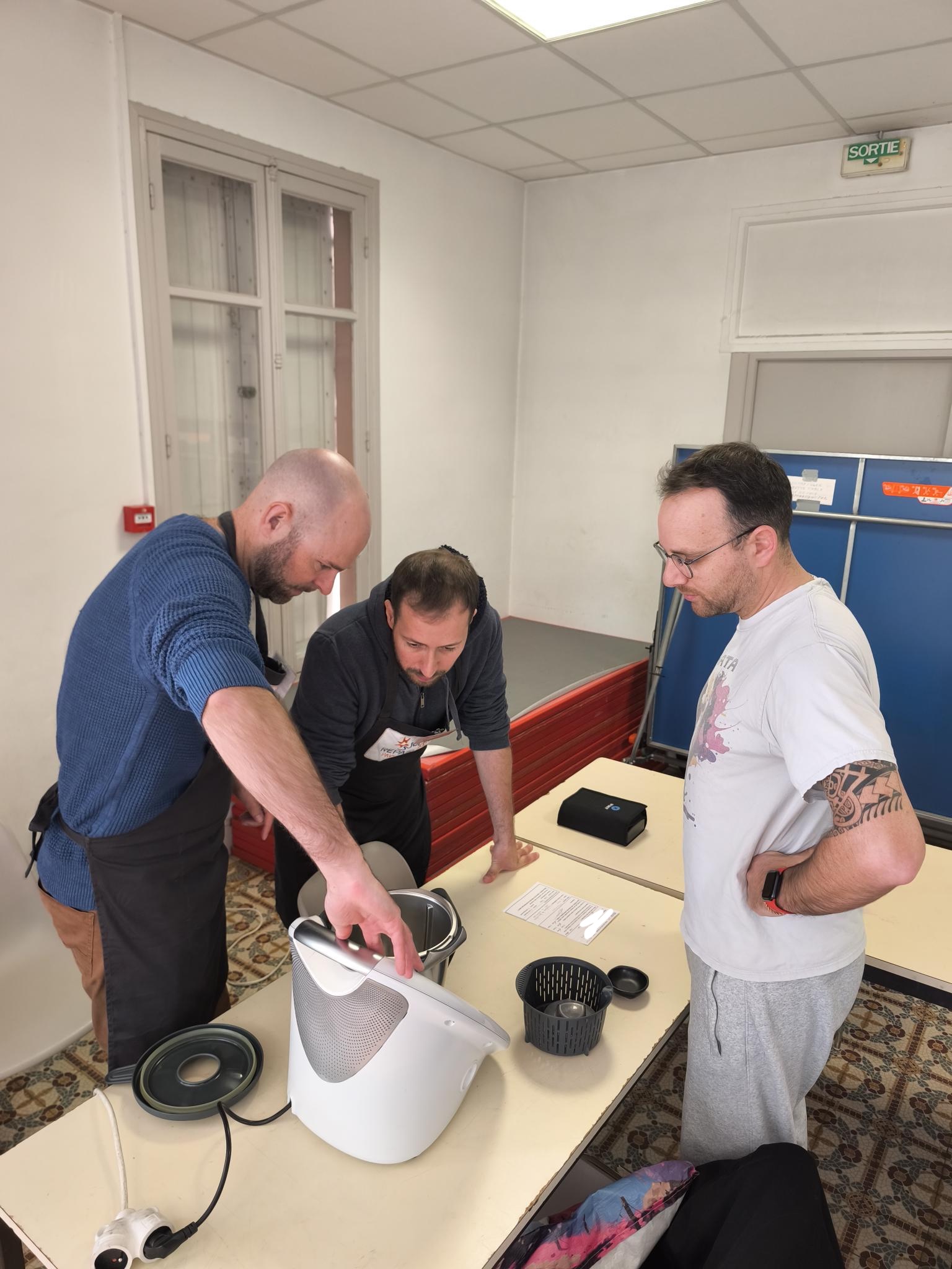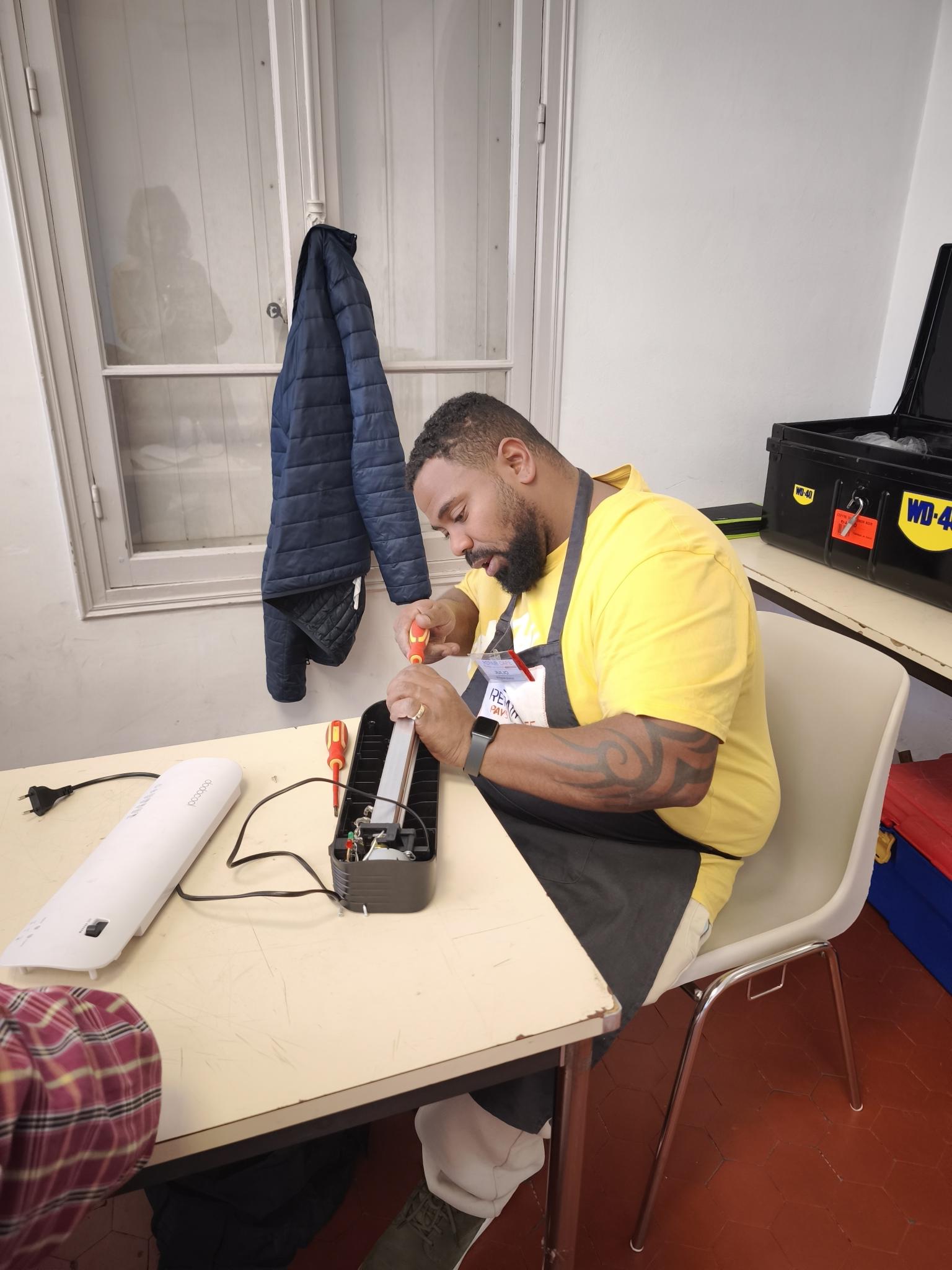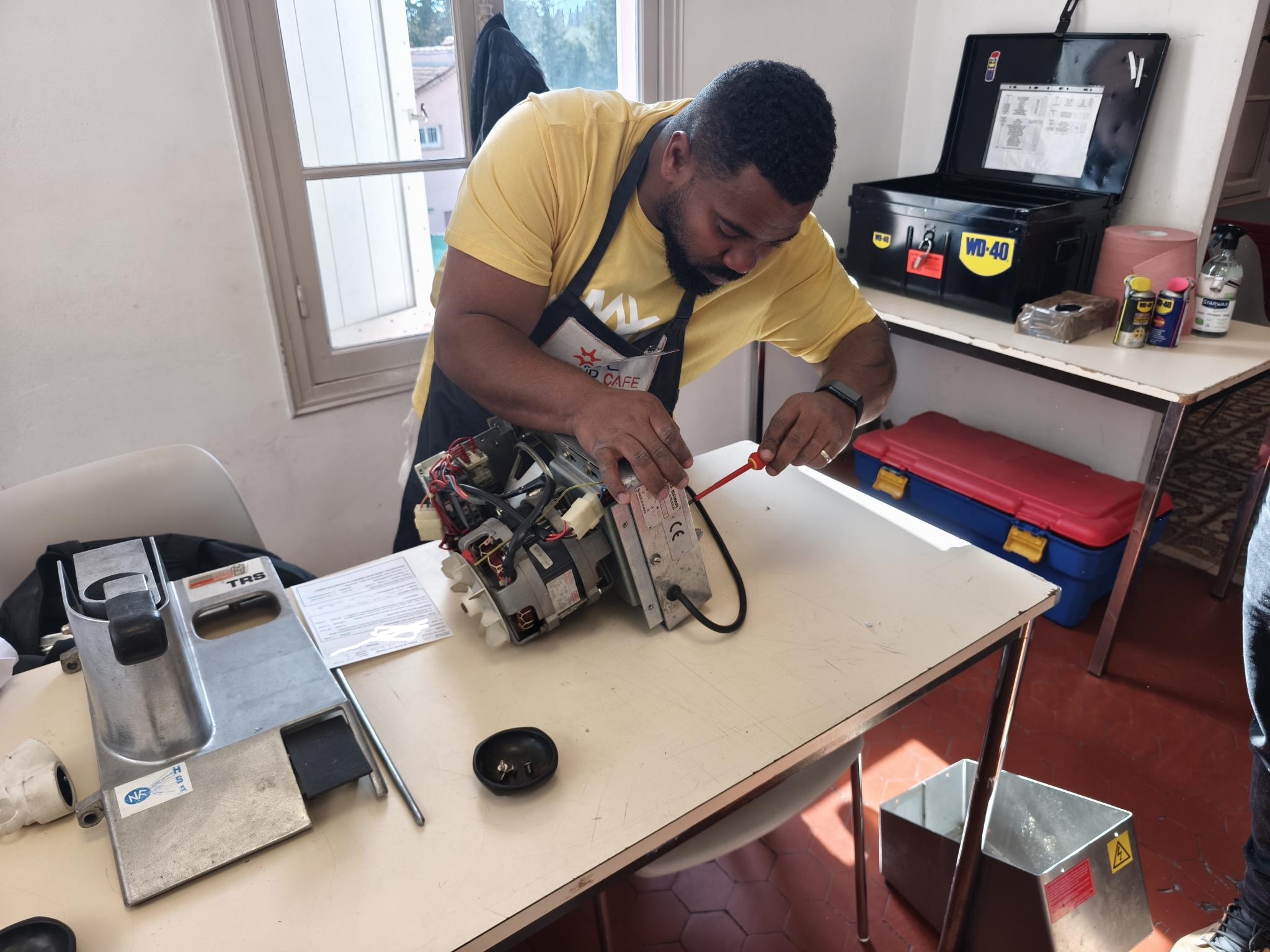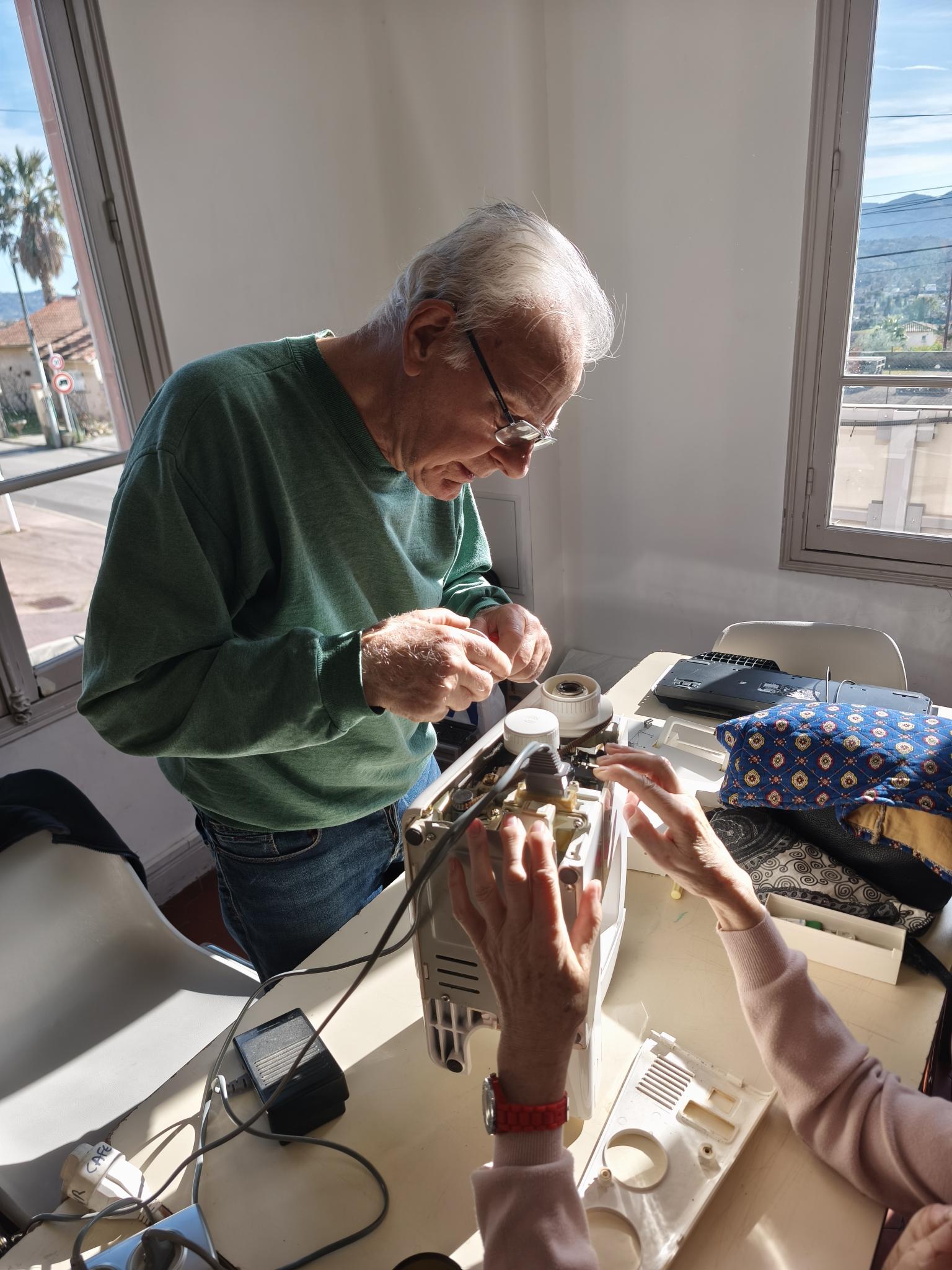 Au-delà des réparations, c’est une fois de plus l’ambiance chaleureuse qui a marqué cet atelier. Nous avons eu le plaisir d’accueillir la visite amicale d’un restaurateur grassois bien connu (Mr Jin pour les intimes) venu partager un moment de convivialité avec notre communauté.