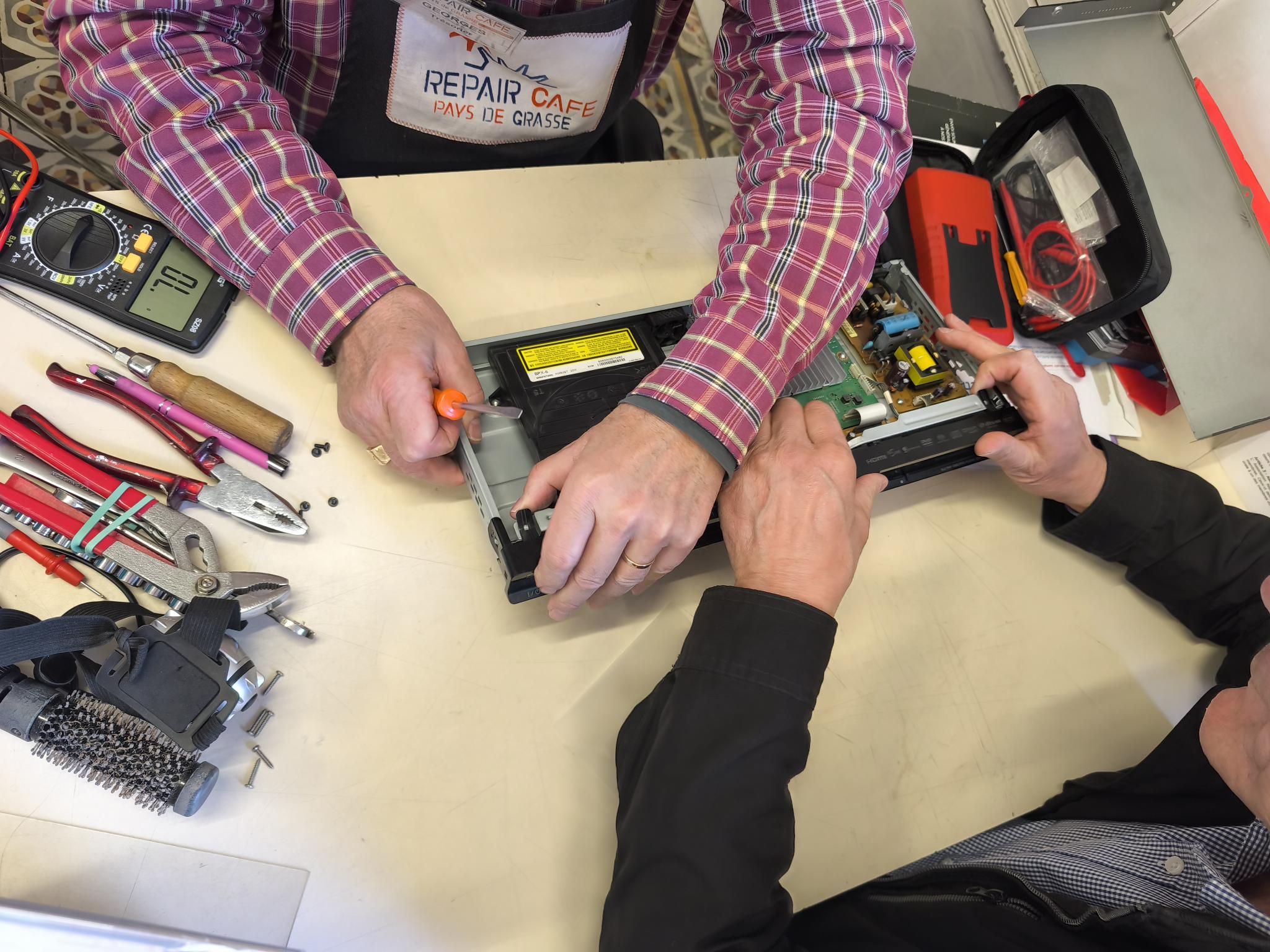 Le monde de la restauration grassoise était également à l’honneur avec la réparation d’une éplucheuse à légumes provenant d’un célèbre restaurant de l’avenue Chiris. Cet appareil professionnel, qui a contribué à ravir les papilles de nombreux clients pendant plus de vingt ans, repart pour un nouveau cycle de service. Une belle illustration de l’esprit anti-gaspi appliqué au monde professionnel.