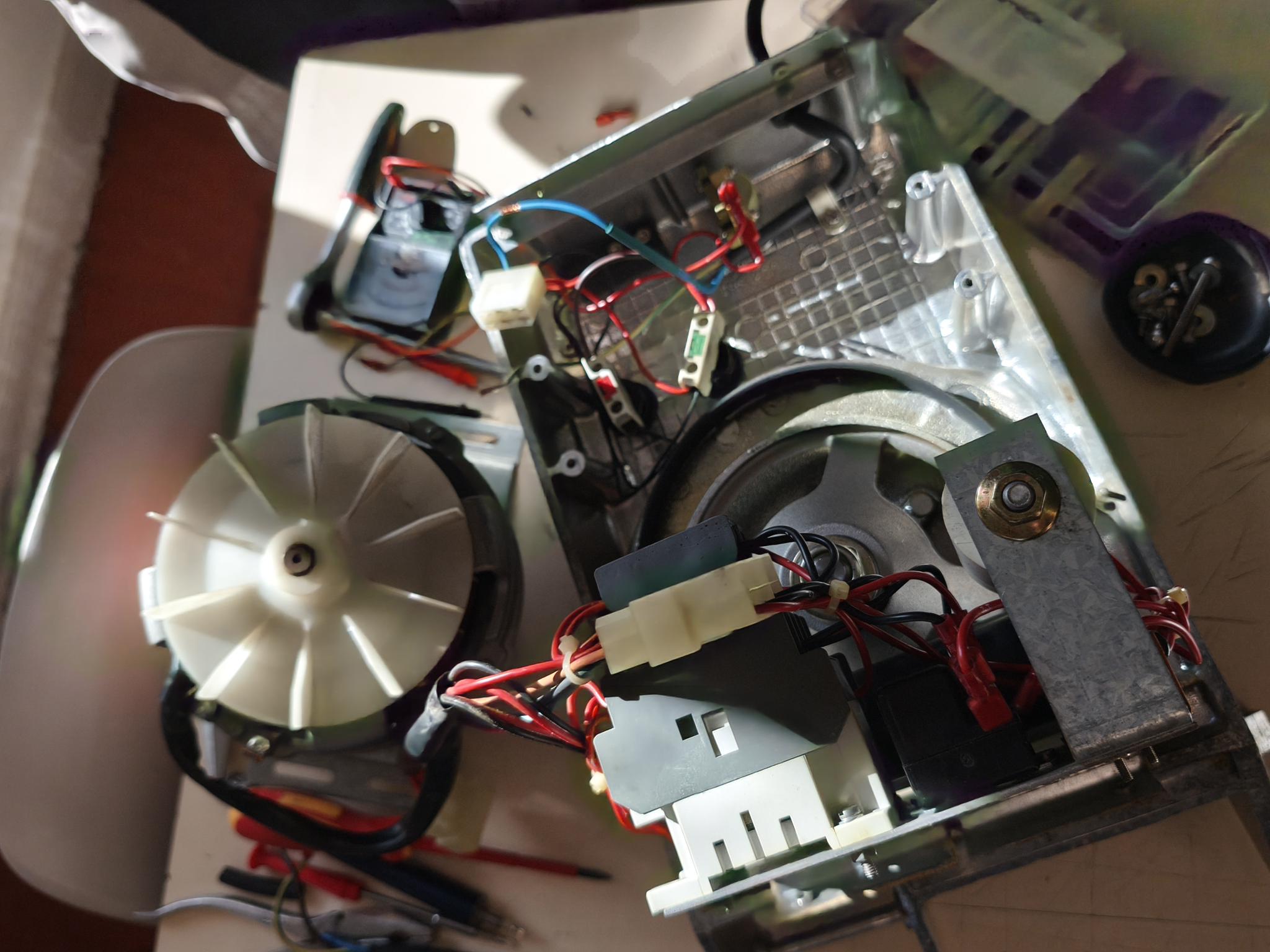Autre pièce de caractère sur nos établis : une rôtissoire à air de plus de 50 ans, véritable ancêtre du air fryer moderne. Un demi-siècle de bons et loyaux services, et ce n’est pas fini grâce à l’intervention de notre équipe !