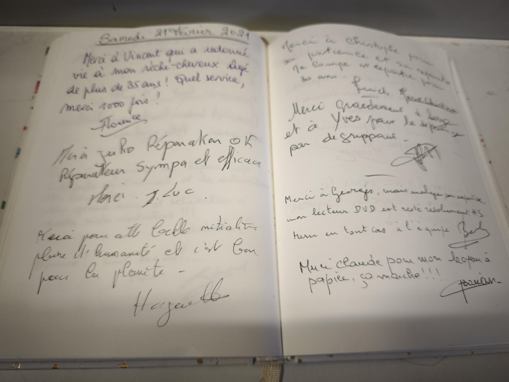 Notre livre d’or s’est lui aussi enrichi de nouveaux témoignages, preuve que l’expérience Repair Café touche le cœur de ceux qui la vivent.